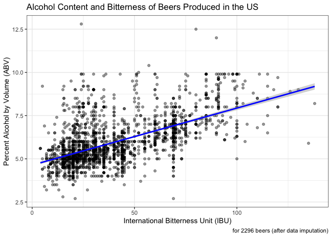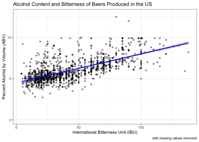 This data analysis of craft beers and breweries in the United States has three main objectives, to evaluate the number of craft breweries in each state, to provide summary statistics of craft beer metrics, and to investigate statistical relationships between these metrics. We aim to provide useful insight into the craft beer industry of value to executives of Budweiser.