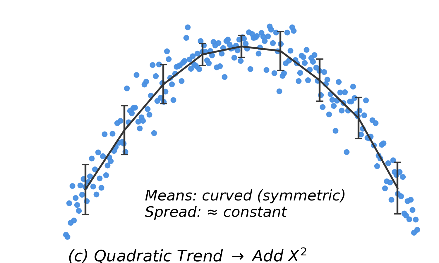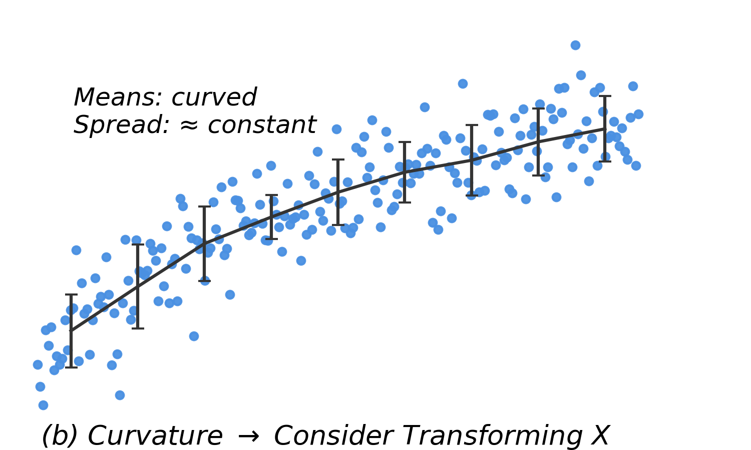 - Remedy: Consider adding polynomial terms (quadratic or cubic) to improve model fit.