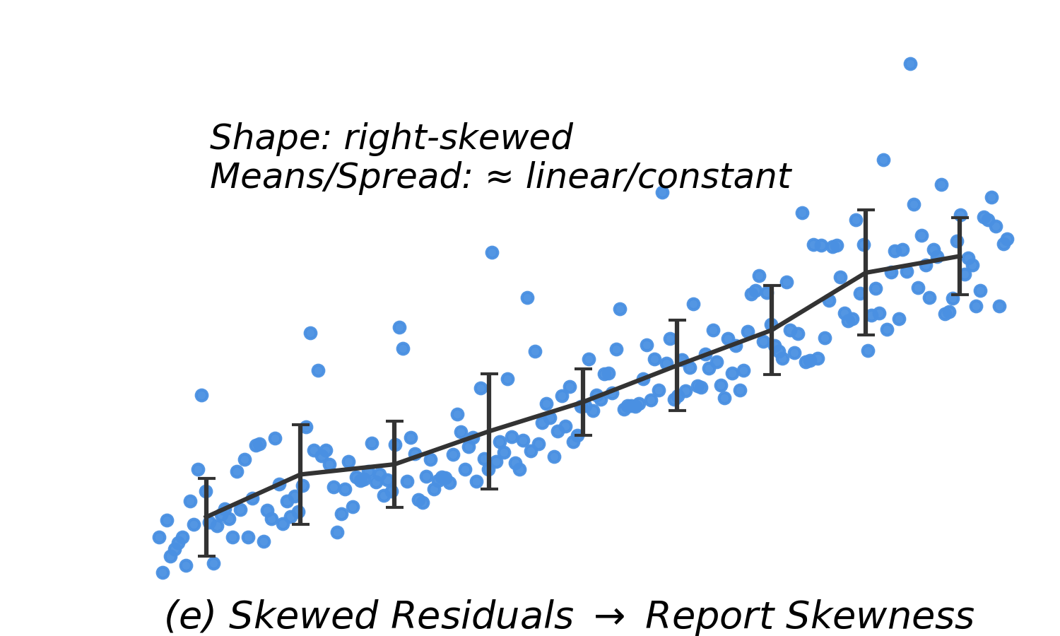Can still model the mean, but CIs/PIs may be unreliable. Consider transformations. |