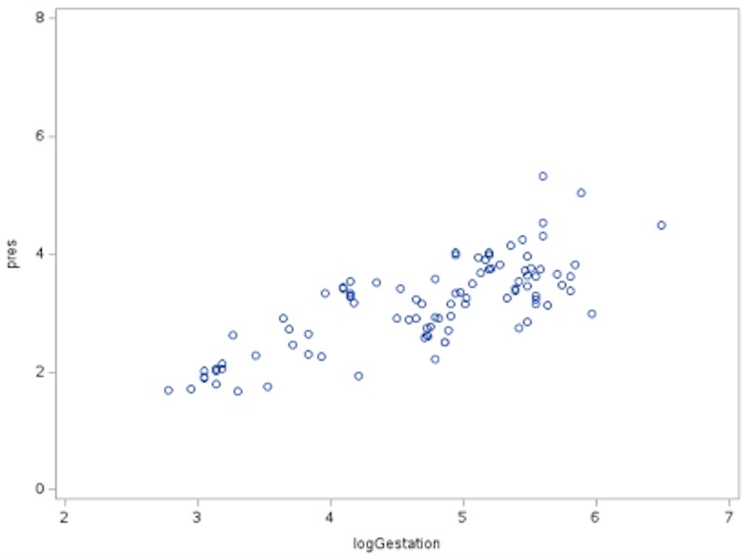 \[ \text{p}_{\text{res}} = \beta_0 + \beta_1(\text{logGest}). \]