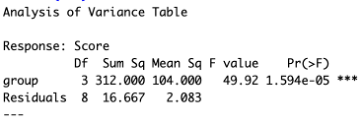 Q: Consider the plot and the corresponding ANOVA table below. What number represents the variances of the assumed normal distributions of Y for each group?